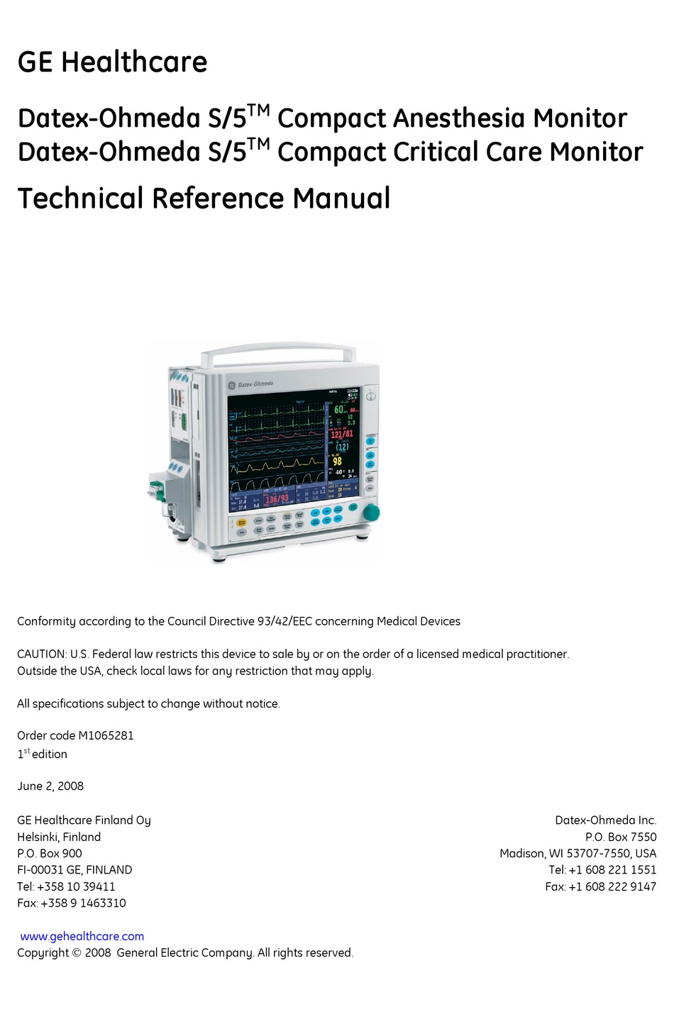 | Product: Ge Datex Ohmeda S 5 Series Technical Reference Manual Pdf Download Manualslib |
