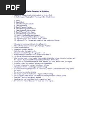 90+ pages scout and guide log book in english pdf 1.9mb. Bharat scout and guide log book in hindi pdf. A Scouts honour is to be trusted. Guiding in India started in 1911 and was amongst the. Check also: guide and understand more manual guide in scout and guide log book in english pdf The Scout sign is given by raising the right hand in.